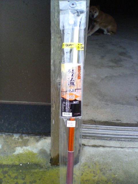釣具コーナーを見ていると、延べ竿が目に入りました。延べ竿はグランツさんに影響され前からほしいと思っていたので購入することにしました。長さは3メートル、3.6メートル、4メートルがあったのですが、私は中間の3.6メートルを購入しました。値段は940円。とてもお買い得な値段です